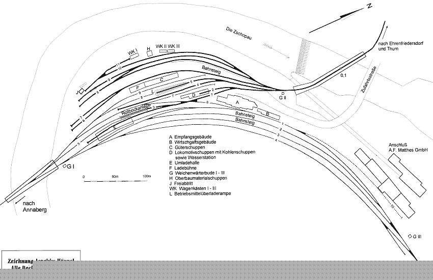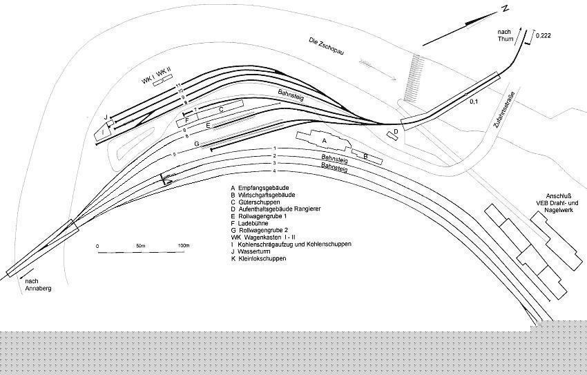 Gleisplan des Bahnhofs Wilischthal ca. 1980.